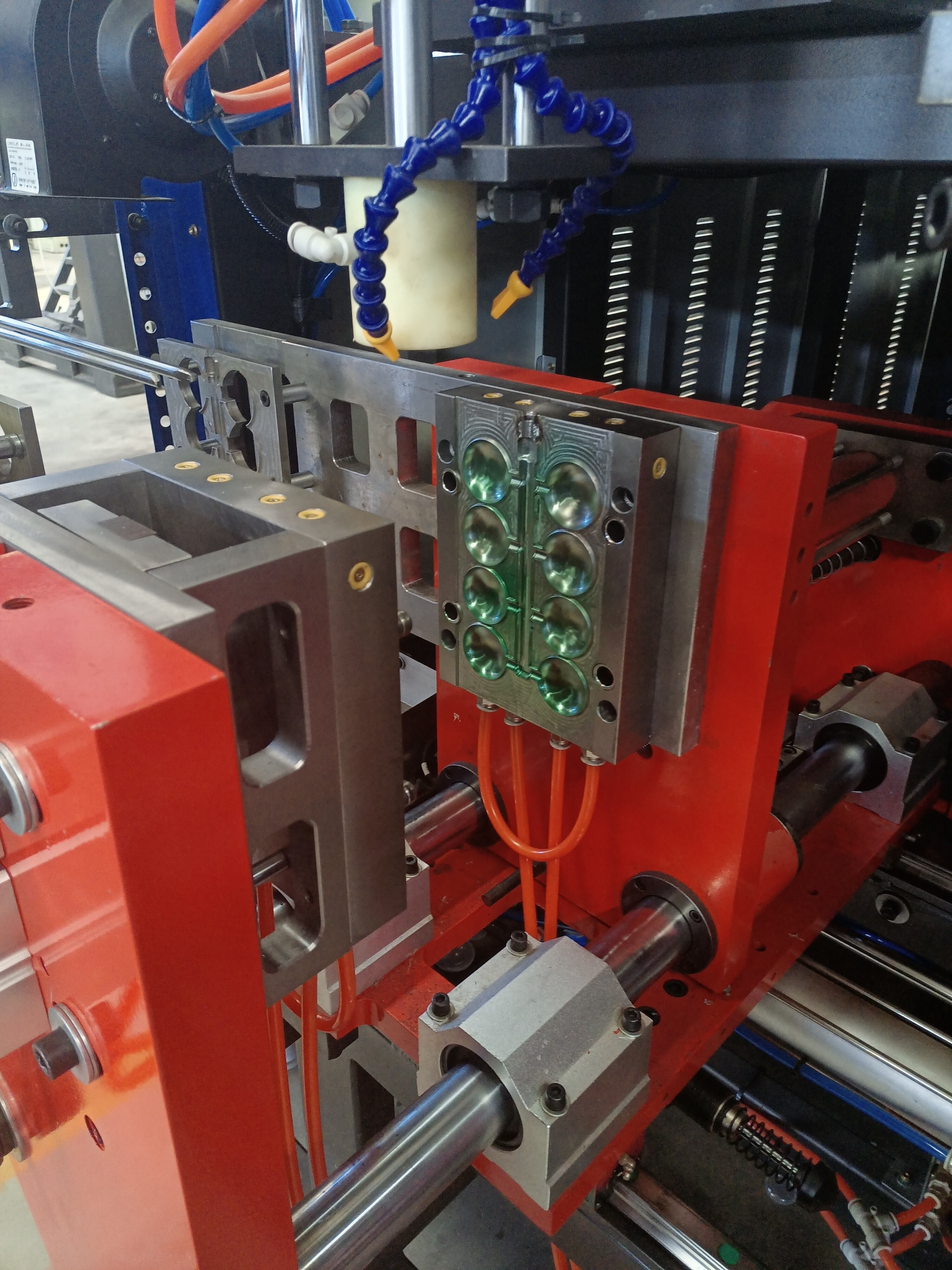 Mesin ini cocok untuk memproduksi botol max.5 Liter.Stasiun ganda kepala mati tunggal.Dilengkapi dengan auto deflashing