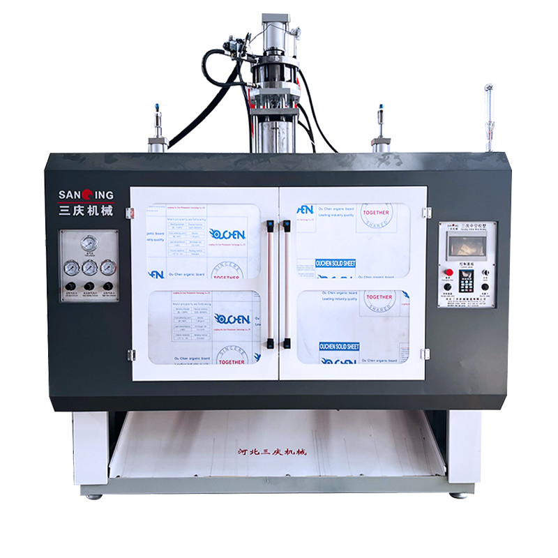 Model ini adalah mesin cetak tiup otomatis dorong otomatis 5 liter dorong langsung, adalah peralatan produksi otomatis penuh yang ekonomis, cocok untuk panci oli mesin, panci cair cuci, deterjen, ember urea dan produk vakum kecil lainnya.